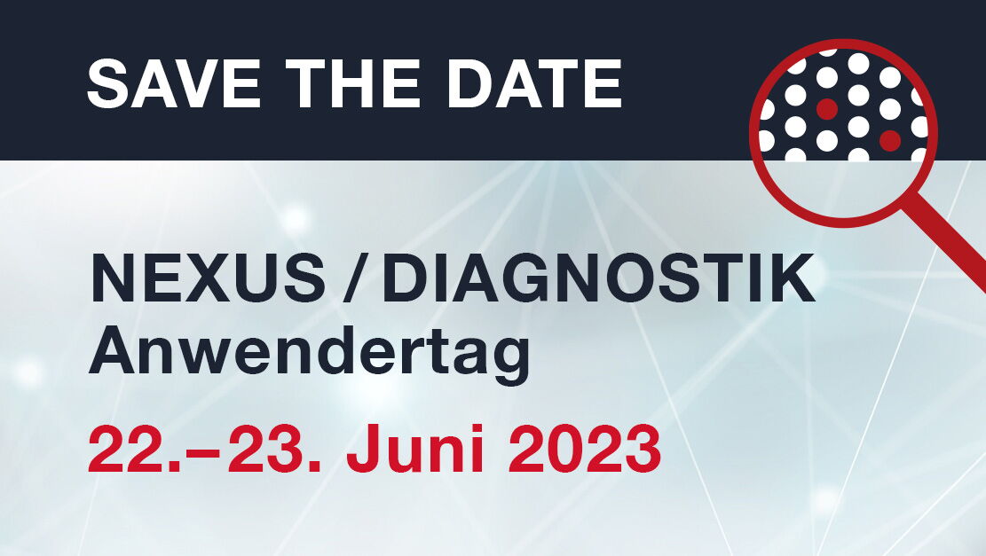 nach einer langen Atempause ist es endlich soweit – der NEXUS / DIAGNOSTIK Anwendertag ist zurück! Und das dieses Mal nicht remote, virtuell oder hybrid, sondern live und in Farbe vom 22. bis 23. Juni 2023 im THE SQUAIRE in Frankfurt.