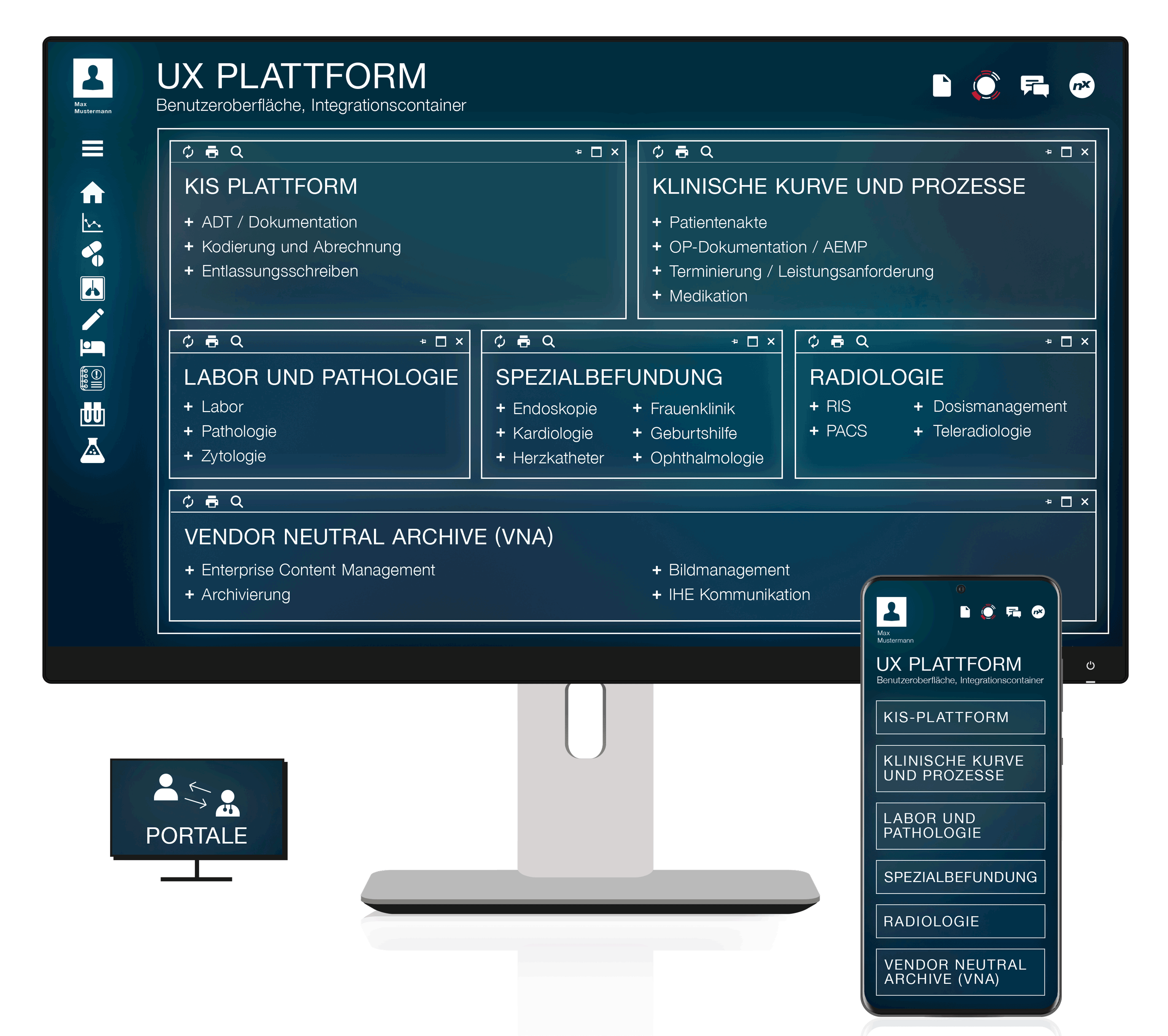 Dazu kommen Portallösungen, ein mobiles Gesamtkonzept und die einheitliche Archivierung aller Patientendokumente und -bilder als strategische Datenbasis (VNA / IHE-Repository). ONE / NEXUS – gelebte Interoperabilität, smarte Lösungen.