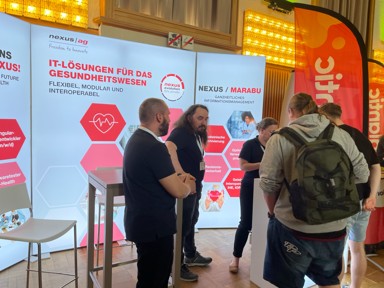 Mit unserem Produkt NEXUS / PEGASOS – einer ganzheitlichen Lösung für strategisches Informationsmanagement im Gesundheitswesen – waren wir als Partner der DevDays vor Ort. Im Mittelpunkt stand jedoch vor allem der persönliche Austausch mit Entwicklerinnen und Entwicklern. Unser Fokus lag darauf, gezielt Fachkräfte kennenzulernen und potenzielle Bewerberinnen und Bewerber direkt anzusprechen. Viele Besucherinnen und Besucher nutzten die Gelegenheit, sich spontan bei uns zu bewerben – ein deutliches Zeichen für das große Interesse an unseren Themen und uns als Unternehmen.