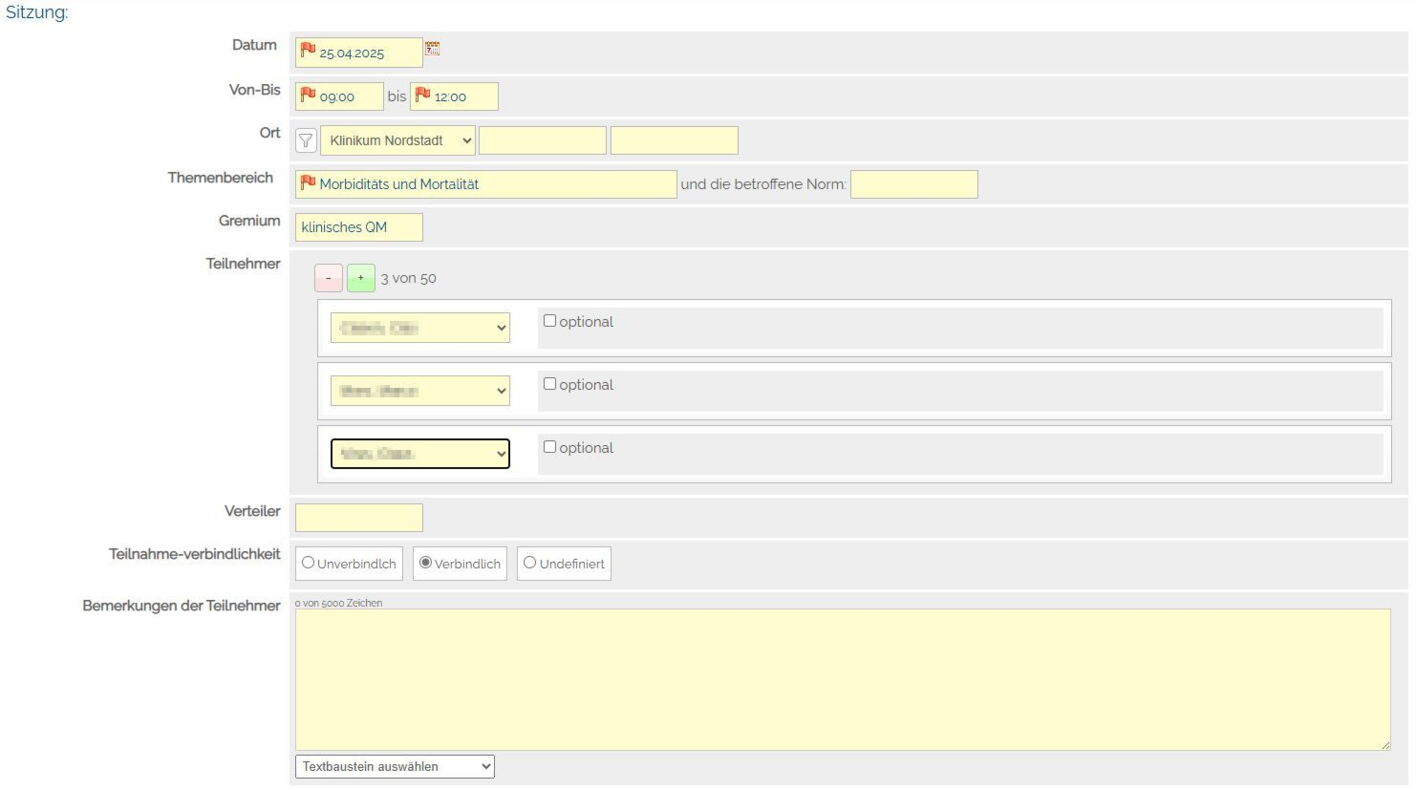 Mit dem Zusatzmodul im NEXUS / CURATOR planen Sie Ihre M&M-Konferenz schnell und unkompliziert. Legen Sie Datum, Uhrzeit, Teilnehmer, Ort, Themenbereich und Gremium fest und bestimmen Sie, ob die Konferenz verbindlich ist. Ergänzen Sie Bemerkungen und Anhänge, erstellen Sie eine Agenda und fügen Sie bei Bedarf Folgetermine oder eine Bewertung hinzu. So behalten Sie jederzeit den Überblick und gewährleisten einen reibungslosen Ablauf.