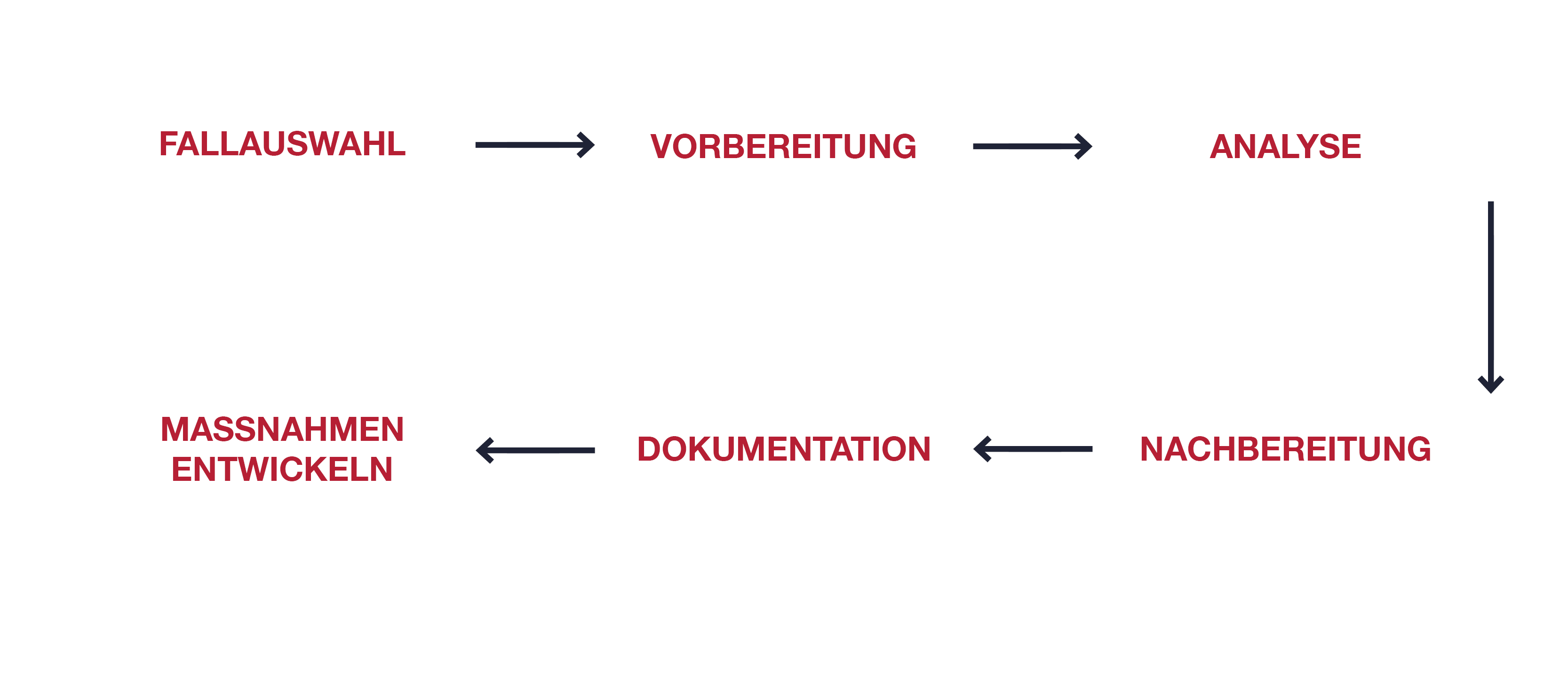 Die beteiligten Ärzte, Pflegekräfte und weiteren Fachleute erörtern den Fall eingehend. Sie analysieren dabei die medizinische Versorgung, die diagnostischen Entscheidungen, den Behandlungsverlauf und die Kommunikation innerhalb des Teams.