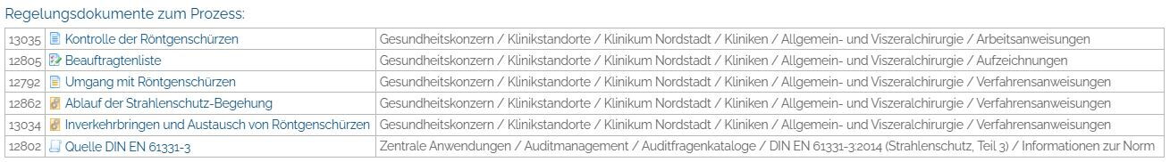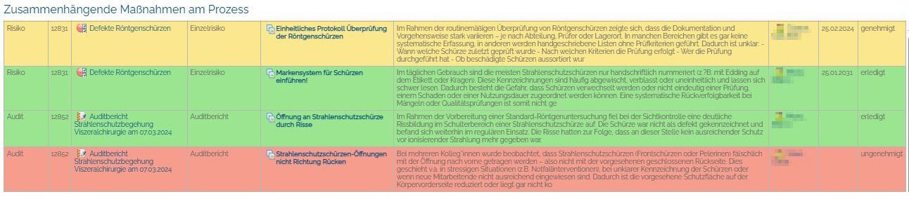 - Alle relevanten Informationen (Risiken, Audits, Maßnahmen) sind direkt prozessbezogen verlinkt (sofern Einzelmodule lizensiert sind)